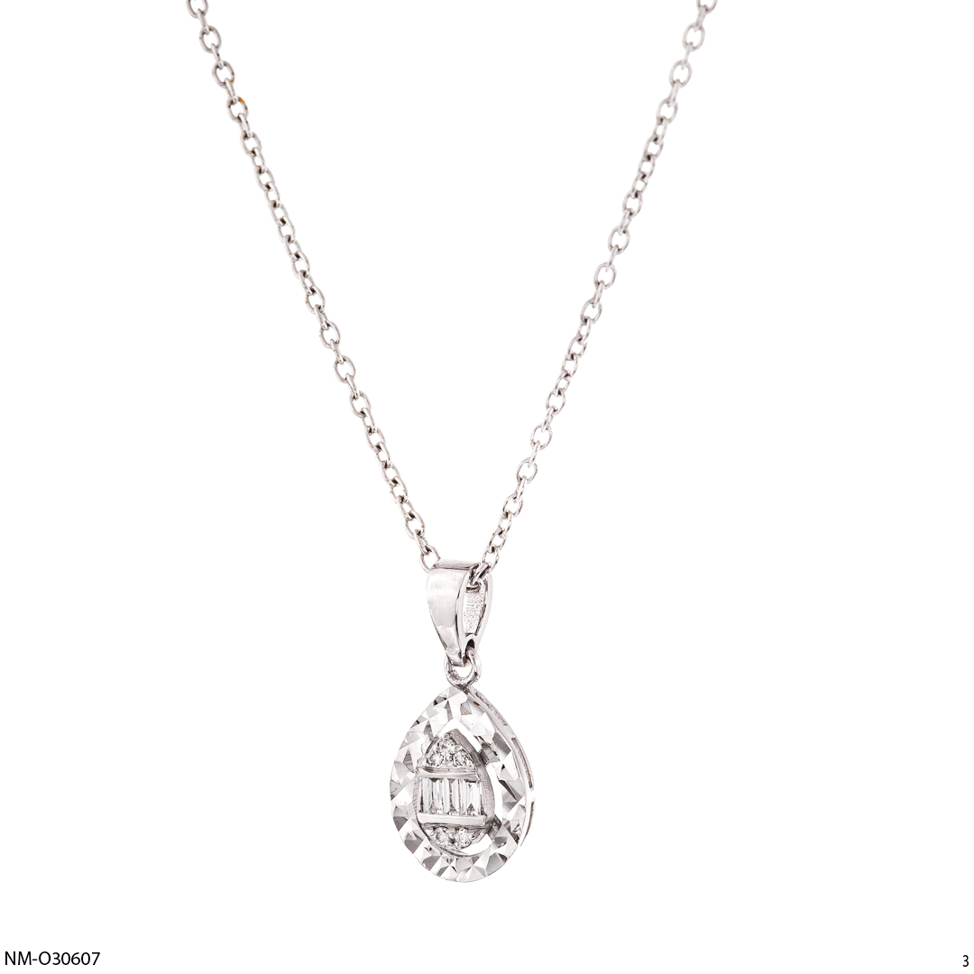 This elegant necklace features a delicate chain adorned with a stunning teardrop-shaped pendant. The pendant is embellished with sparkling diamonds, creating a captivating and luxurious look. The necklace's intricate detailing and high-quality craftsmanship make it a perfect accessory for any occasion.